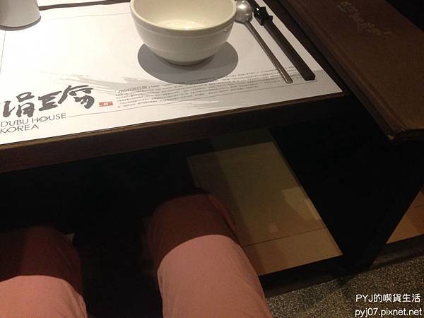 ▲這次坐的位子是看似像傳統席地而坐的韓式矮桌,但其實底下有空間讓腿可以伸展XD