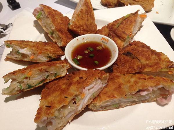 這道烘蛋捲和上次吃三人套餐時吃的雙味起司烘蛋捲不同之處在於多了魚卵~ 然後外觀上比較之下的話,之前吃的起司烘蛋捲的「菜碎」比較均勻,裡外都看得到。這次這份蛋捲的好像都藏在內部的捲層,最外面是較為純淨的蛋皮。口味的話,因為多了魚卵,除了鹹味之外也多了點鮮味,吃起來蠻香的~ 不過老實說我覺得重點還是在起司跟蛋的味道,魚卵只是點綴而已,存在感其實沒那麼明顯,哈。