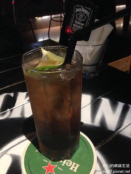 這杯是以龍舌蘭為基底的調酒,加了黑醋栗跟薑汁汽水。這杯喝起來的酒味不會很烈,也不會太甜,對剛接觸飲酒的入門者或是不喜歡太烈酒味的人來說應該是蠻可以接受的~