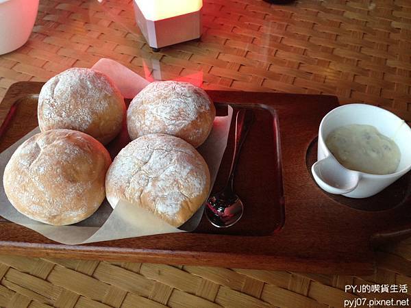 軟綿綿熱呼呼的餐包~ 搭配附上的自製特調塔塔醬,別有一番風味呢😋😋 麵包單吃也是充滿香味,鬆軟口感也是十分順口,幸福感滿分XD
