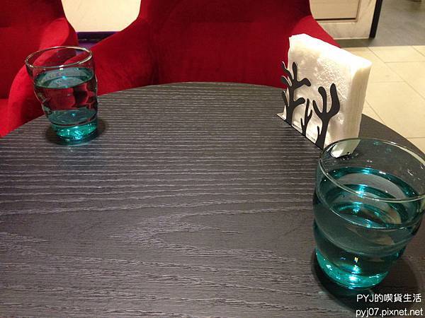 ▲今天被安排在舒適的沙發區,等待朋友前來的同時服務人員很親切地先送上了水杯XD