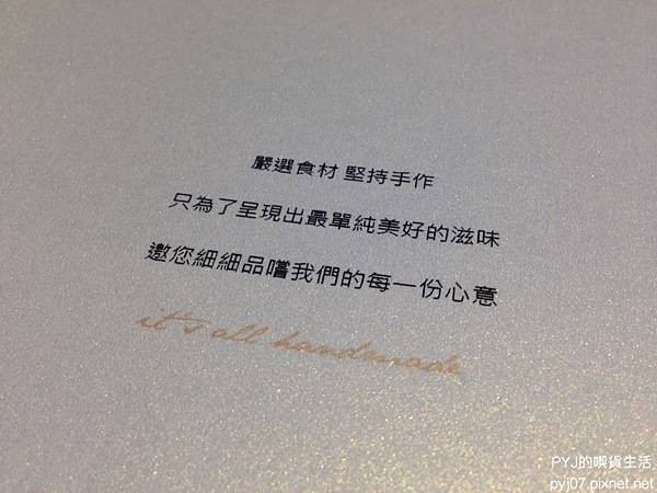 ▲菜單內頁寫著店家的理念😊😊 「嚴選食材,堅持手作」這種精神我欣賞!XD