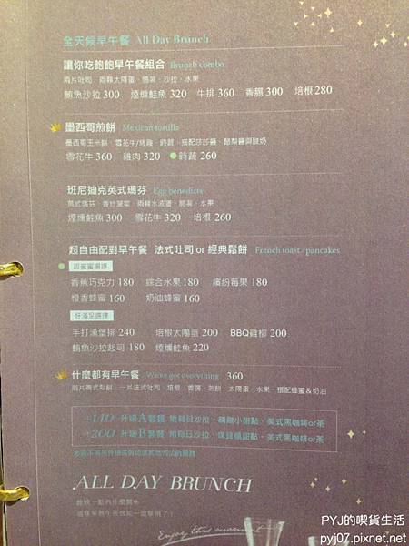 以上菜單的部份主要是早午餐跟甜點的兩頁XD 另外還有漢堡啦帕尼尼等等的好料,詳細菜單以及飲料單請參考完整相簿連結(感謝店家提供電子檔供我使用)