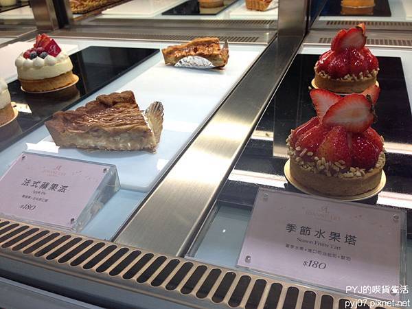 ▲最左邊為抹茶起司蛋糕,身為抹茶控的我有點動心XD 但想說來法式甜點店可以先試比較歐系的口味😝😝