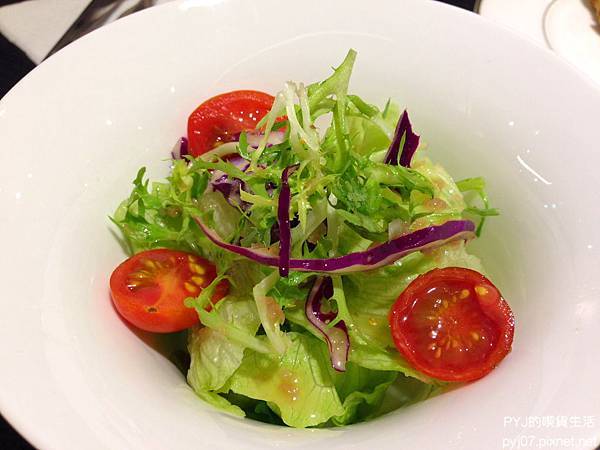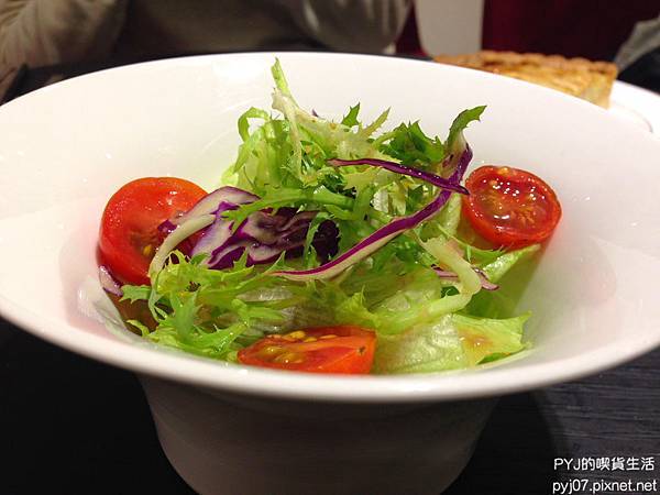 ▲早午餐套餐附的每日沙拉,小小一碗的生菜配上新鮮小番茄,讓你吃到主食之前先開胃一下XD 微酸微鹹的油醋醬很爽口~