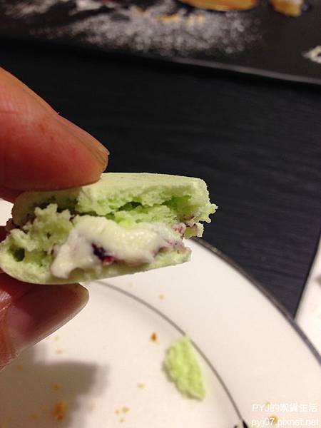 ▲馬卡龍的部份裡頭夾的是莓果餡,酸甜酸甜的不會膩口~