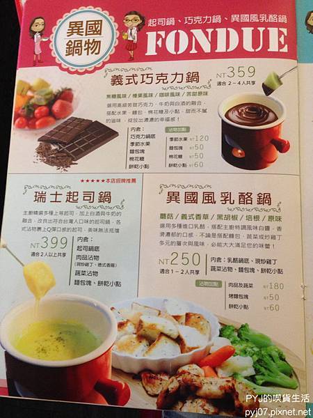▲這間店特別的是有提供起司鍋跟巧克力鍋阿~這次來就是要點一份來試試看XD